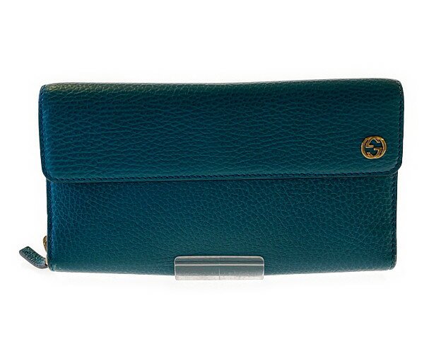スーパーセール限定!30%OFF~【中古】GUCCI グッチ インターロッキング 三つ折り ラウンドファスナー 長財布 レディース 型番:449397 サイズ:下記参照 カラー:ターコイズブルー ハイブランド 万代Net店