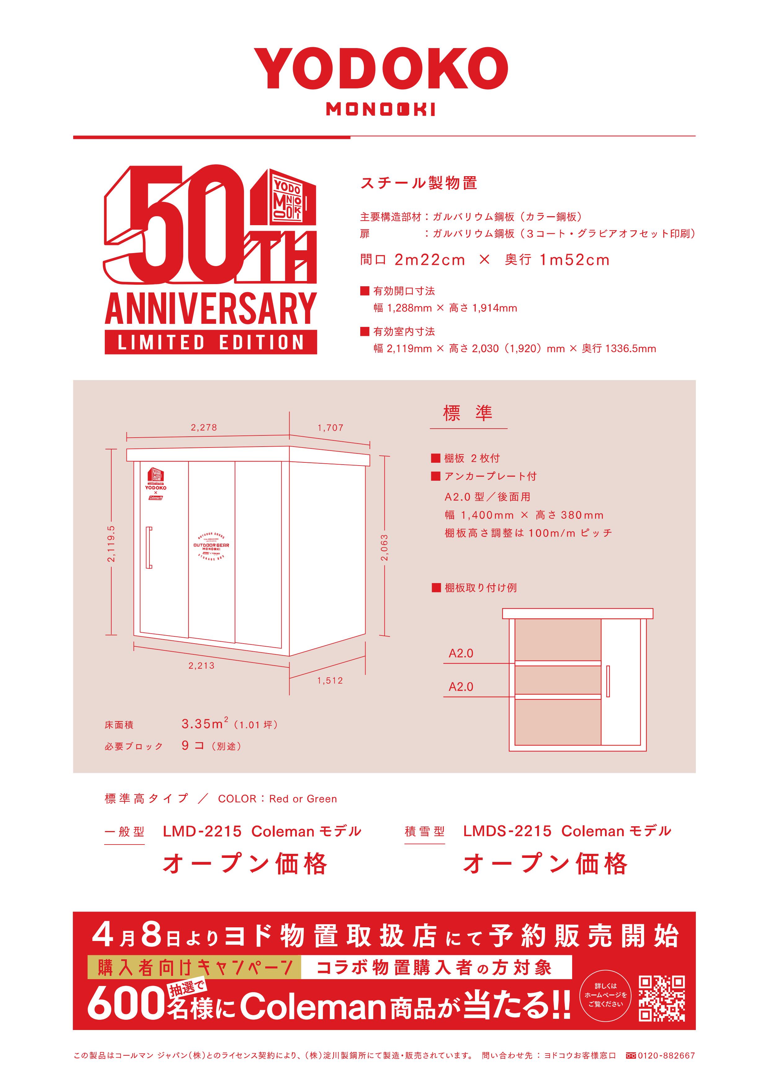 【全国配送無料】 コールマン エルモ ヨド物置 LMD-2215 標準高タイプ 《レッド》 中・大型物置 屋外 物置き 防災保管庫 Coleman おしゃれ物置 沖縄一部、離島は送料別途