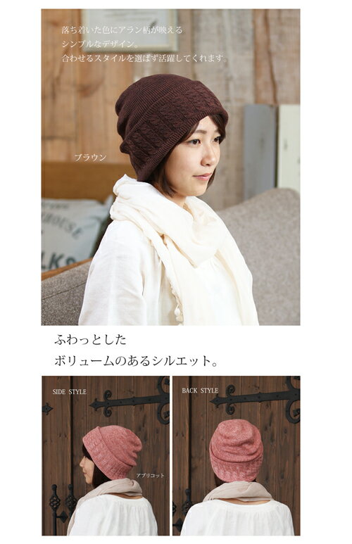 折り返しに小粋なアクセントとしてアラン柄を編み込んで上品で大人っぽく。